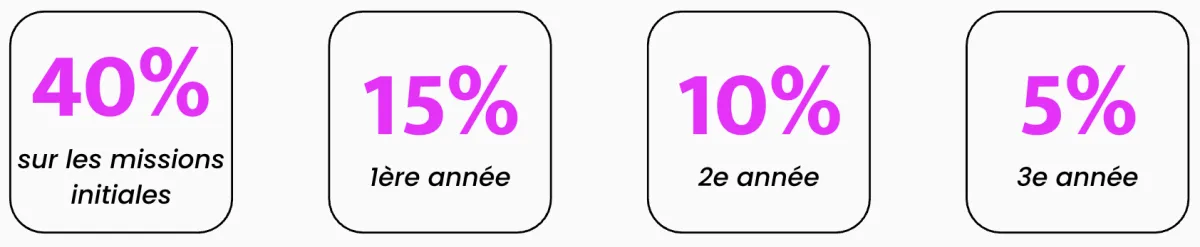 40 % sur les missions initiales (conditions applicables, période de lancement)